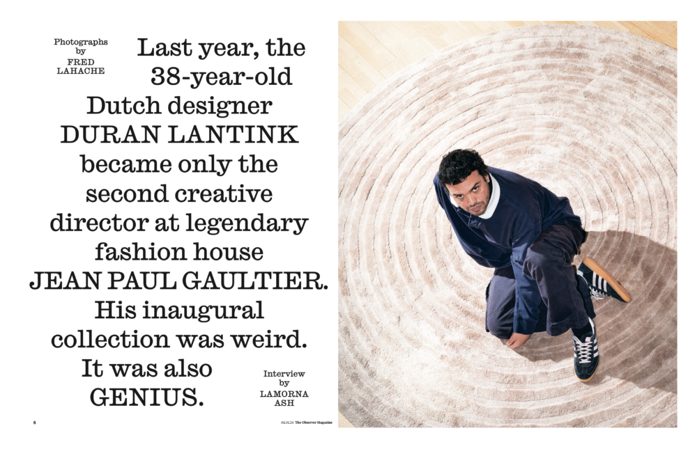 Jean Paul Gaultier’s Duran Lantink cover story for The Observer magazine, interviewed by Lamorna Aash.
